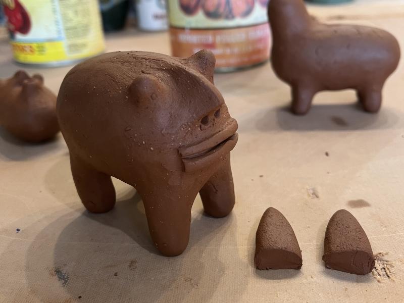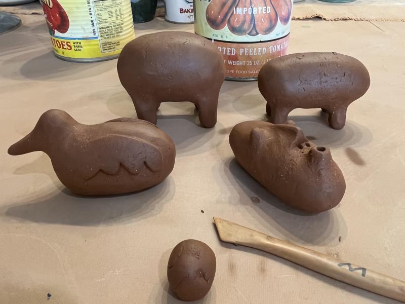 During this workshop, taught by local artist Kim Murton, you will learn how to make a hollow form that will then be turned into a whistle. Kim will demonstrate hand building techniques for making animals, birds, and faces, ending with adding the whistle reed. You will then paint the whistles and practice sgraffito (carving through the paint to the clay below). Choose from making 1 large whistle, or 2 smaller whistles (smaller ones will make a higher pitched sound, larger ones will make a deeper sound).