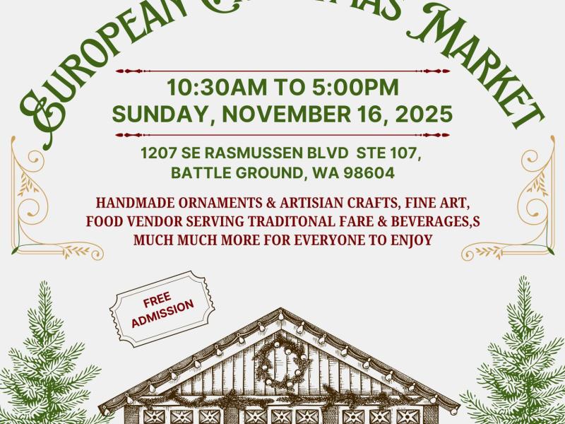 Come and Join us for our first annual European Christmas Market. We will have hand made artisan items, as well as art, and traditional market food and beverages. Event is free admittance. Bring the family, everyone will enjoy this time together.