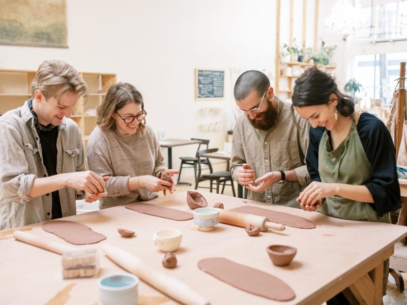 This is a 1.5 hour beginners hand-building class where you will learn the basics of sculpting up to 2 pounds of clay into your own unique creation. No prior experience needed! Your instructor will guide you through the techniques needed to bring your piece to life, and will be around to answer questions and offer tips and tricks. After the workshop, our team will bisque fire your piece, as well as glaze it to one color of your choice. Want to get hands-on with glazing for a more personalized look? Return to paint your fired pieces with our paint-your-own-pottery glazes - ask your instructor for more information.