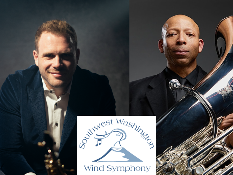 The Southwest Washington Wind Symphony is proud to feature two renowned guest artists at its winter concert: Oregon Symphony’s principal tubist JáTtik Clark and saxophonist Jeff Siegfried from West Virginia University. They will be performing Double Concertino for Tenor Saxophone and Tuba by Portuguese composer Luis Cardoso under the baton of conductor Patrick Murphy from the University of Portland. Musical selections also include Slava! by Leonard Bernstein, Viva Musica by Alfred Reed, Colonial Song by Percy Grainger, and more. SWWS thanks presenting sponsor Beacock Music for its support of our concerts this season.